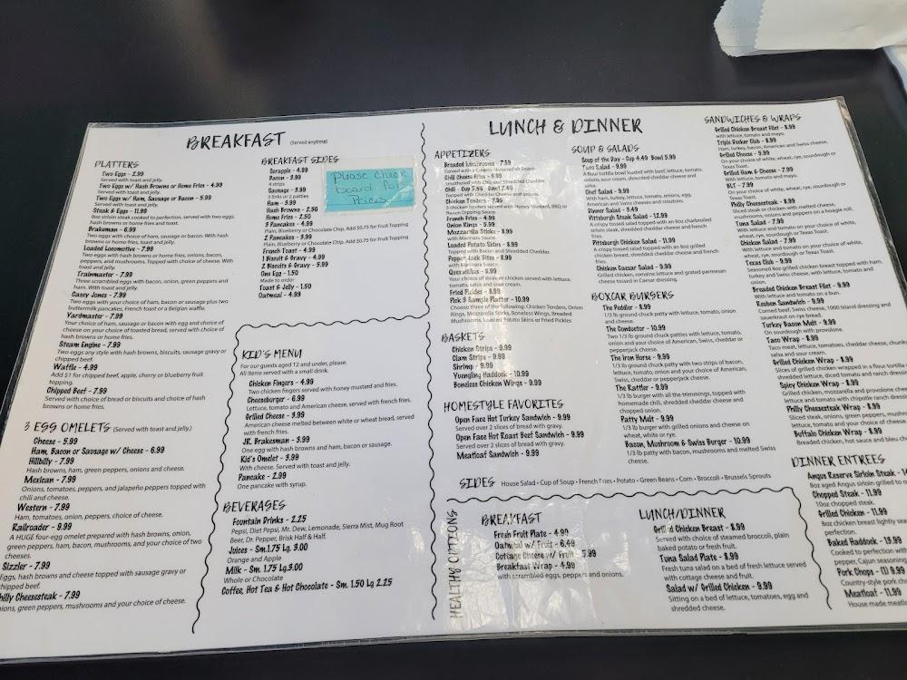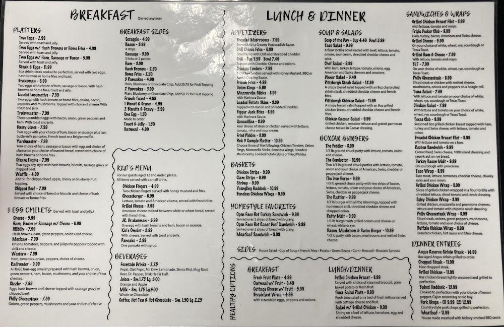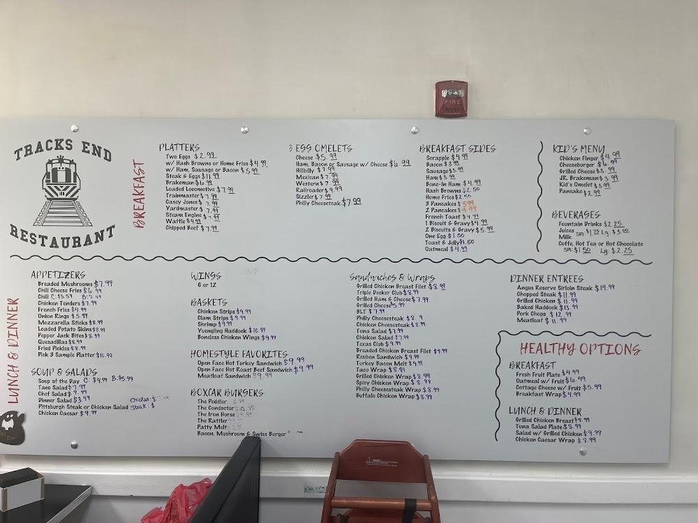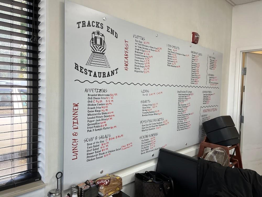 Welcome to Track's End Restaurant, a hidden gem conveniently located in Mechanicsburg, PA, open 24 hours a day. Our diner specializes in homemade comfort food, featuring hearty soups, flavorful sausage, and our signature chipped beef gravy. Whether you're stopping by for a cozy breakfast, leisurely lunch, or late-night dinner, we cater to all cravings with a menu that showcases local specialties and mouthwatering desserts. Enjoy a relaxed atmosphere with accessible seating and free Wi-Fi, perfect for groups or solo diners. Take advantage of our takeout and delivery options, and experience a true taste of home at Track's End.